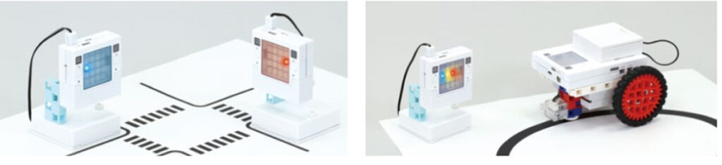 O ArtecRobo 2.0 permite que você construa sistemas complexos que utilizam múltiplos dispositivos simultaneamente, conectando-os por meio de comunicação sem fio. Não se limite a criar apenas um semáforo; construa uma rede completa de sinais coordenados e carros que param e arrancam automaticamente!