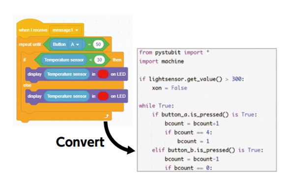 O programa que você criar pode ser convertido para a linguagem de programação Python.
