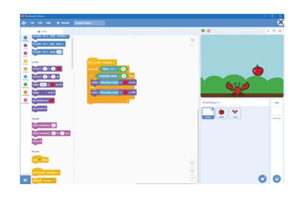 Crie robôs e sistemas que utilizem conteúdo digital e hardware em conjunto, como um robô que se move acompanhando animações e sons na tela, ou personagens de jogos que se movem em resposta às leituras de um sensor.
