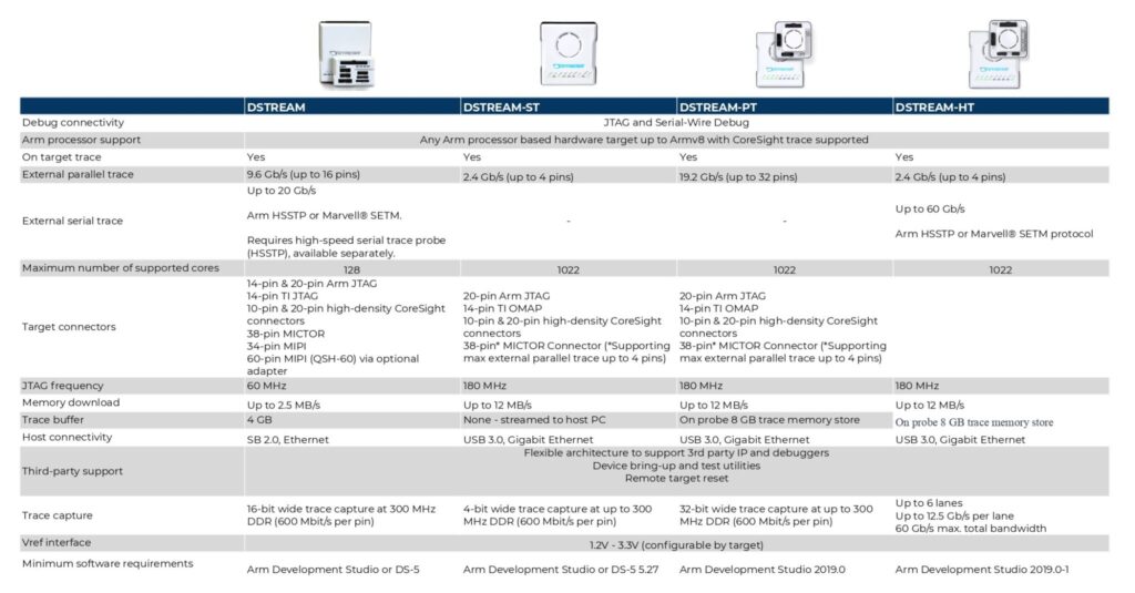 A família de adaptadores de depuração e rastreamento Keil ULINK conecta o computador host ao sistema de destino via USB. O ULINK utiliza interfaces de depuração integradas e oferece suporte à depuração de aplicativos e à programação de memória flash.